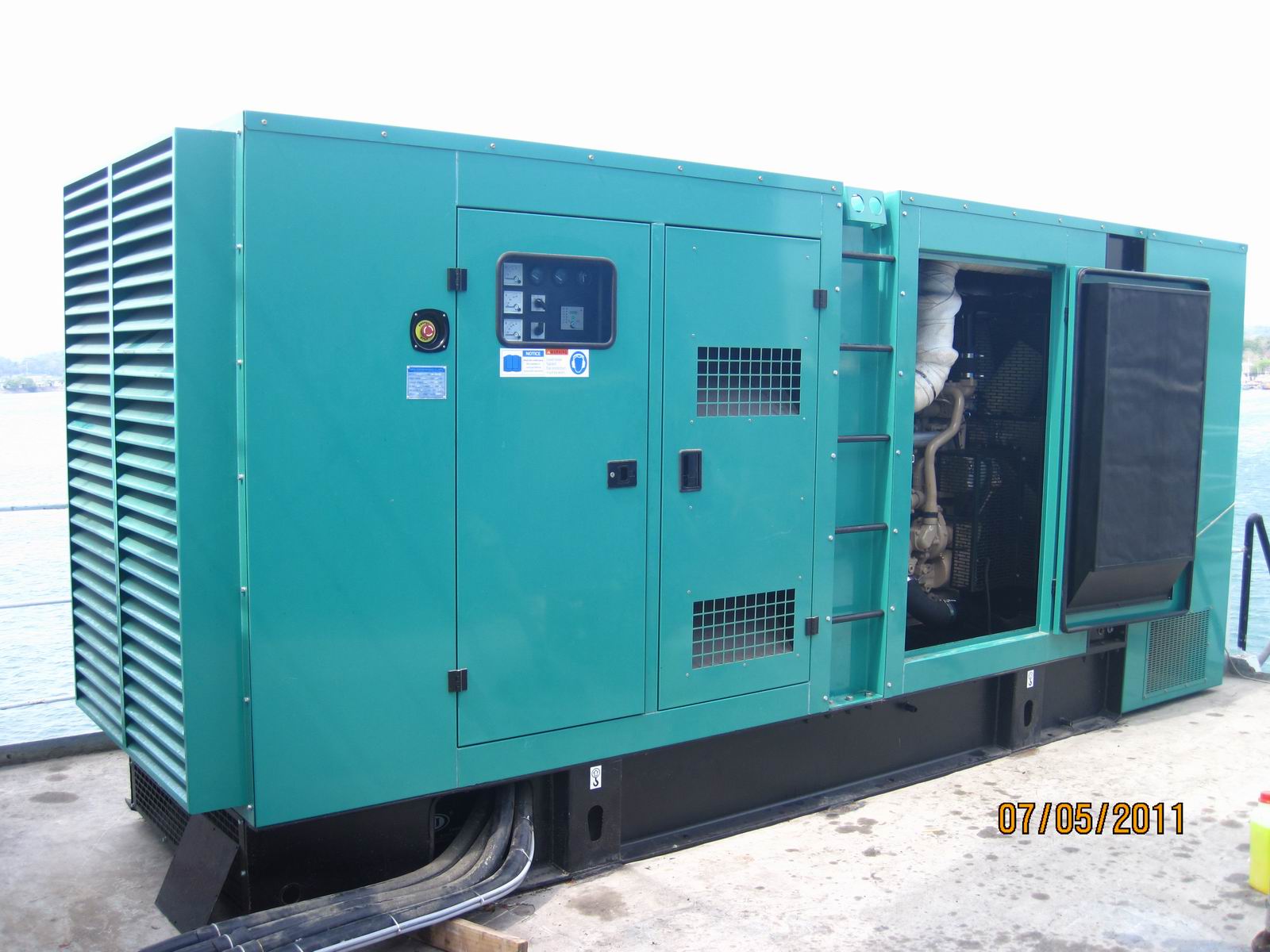 The 625KVA Silent type gensets have installed in the ship deck for standby use in Srilanka,our paiting of of soundproof canopy proved of good quality to use in this sea enviornment.